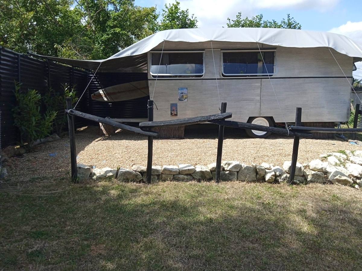 Caravan in Agnès' garden