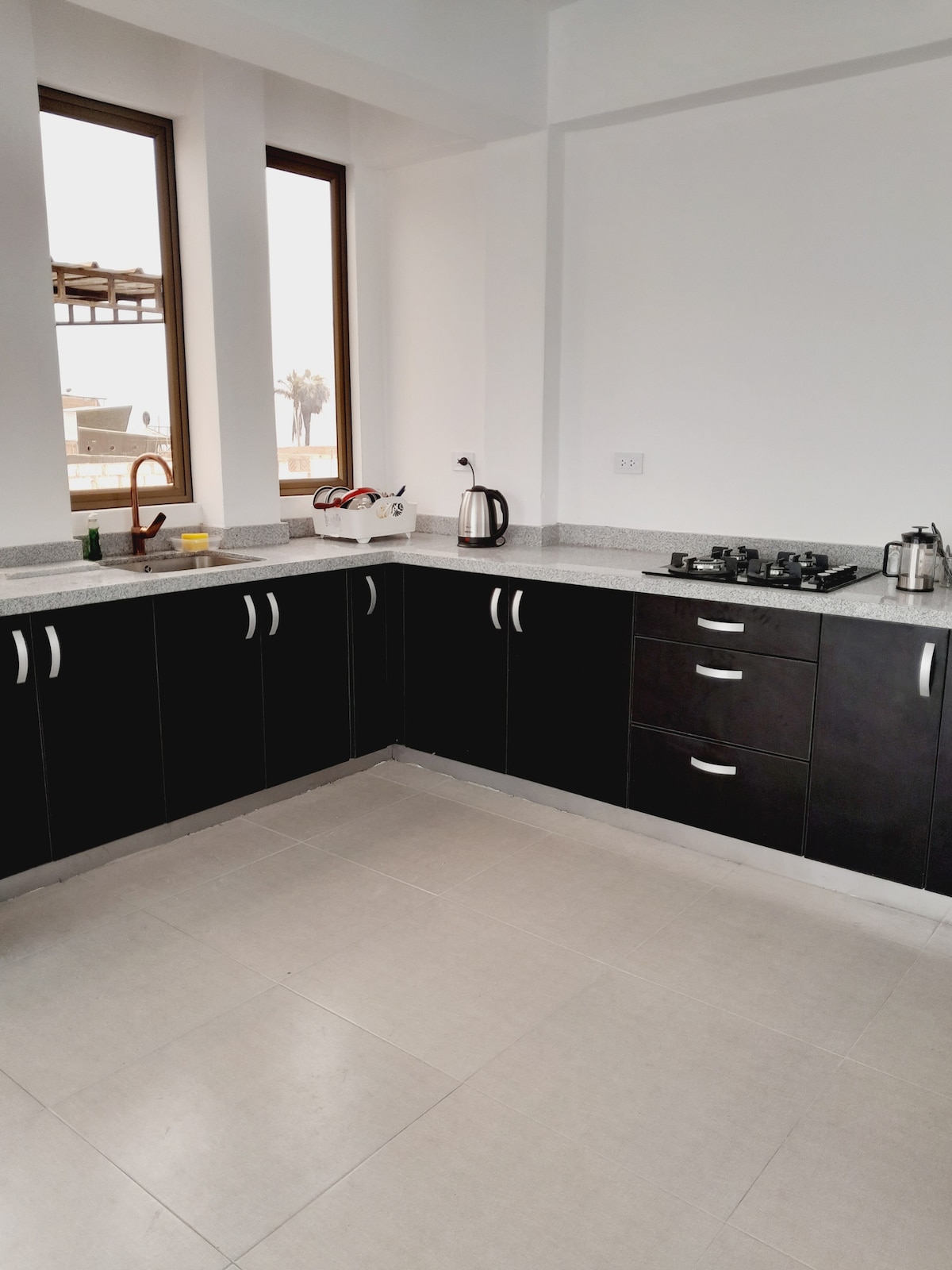 Welcome to your cozy mini-apartment in Trujillo! This modern space is located in one of the best and safest areas of Trujillo. NOTE: it is located on the sixth floor accessible via stairs without an elevator. It is perfect for a couple or a person looking to live as if in their own home. Supermarkets are just a few steps away, and it is 15 minutes from downtown. It has: a living-dining room overlooking the street, a bedroom, a bathroom, and a kitchen. We look forward to seeing you.