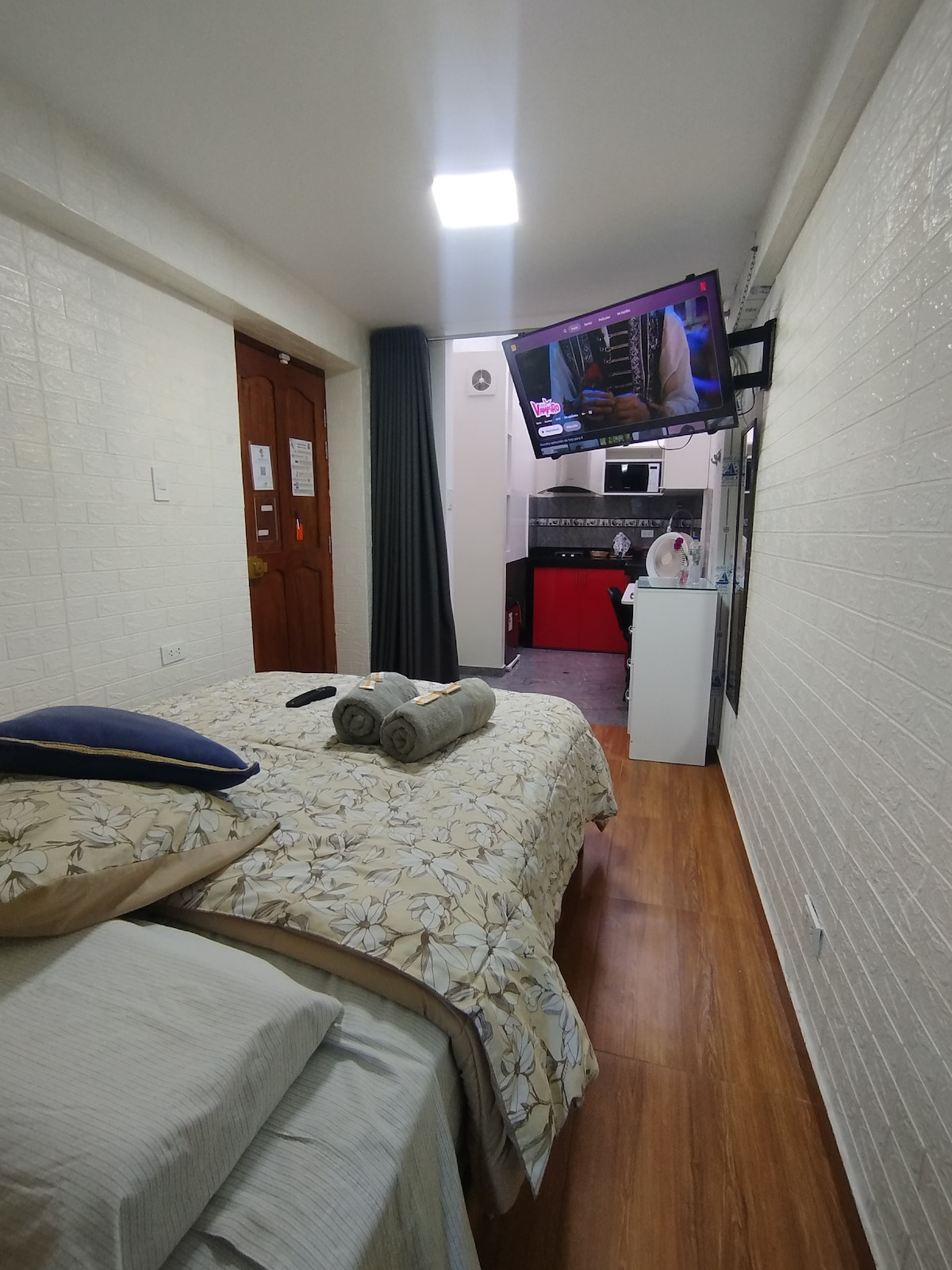 Brand new mini apartment in front of a park in a good area, with surveillance and cameras outside. Dining room, kitchen, sofa bed, desk/dresser, closet, queen size bed and rooftop terrace. It has a kitchen and cooking utensils, as well as basic ingredients for cooking. High-quality TV with more than 20,000 movies and series available, plus all national and international channels.