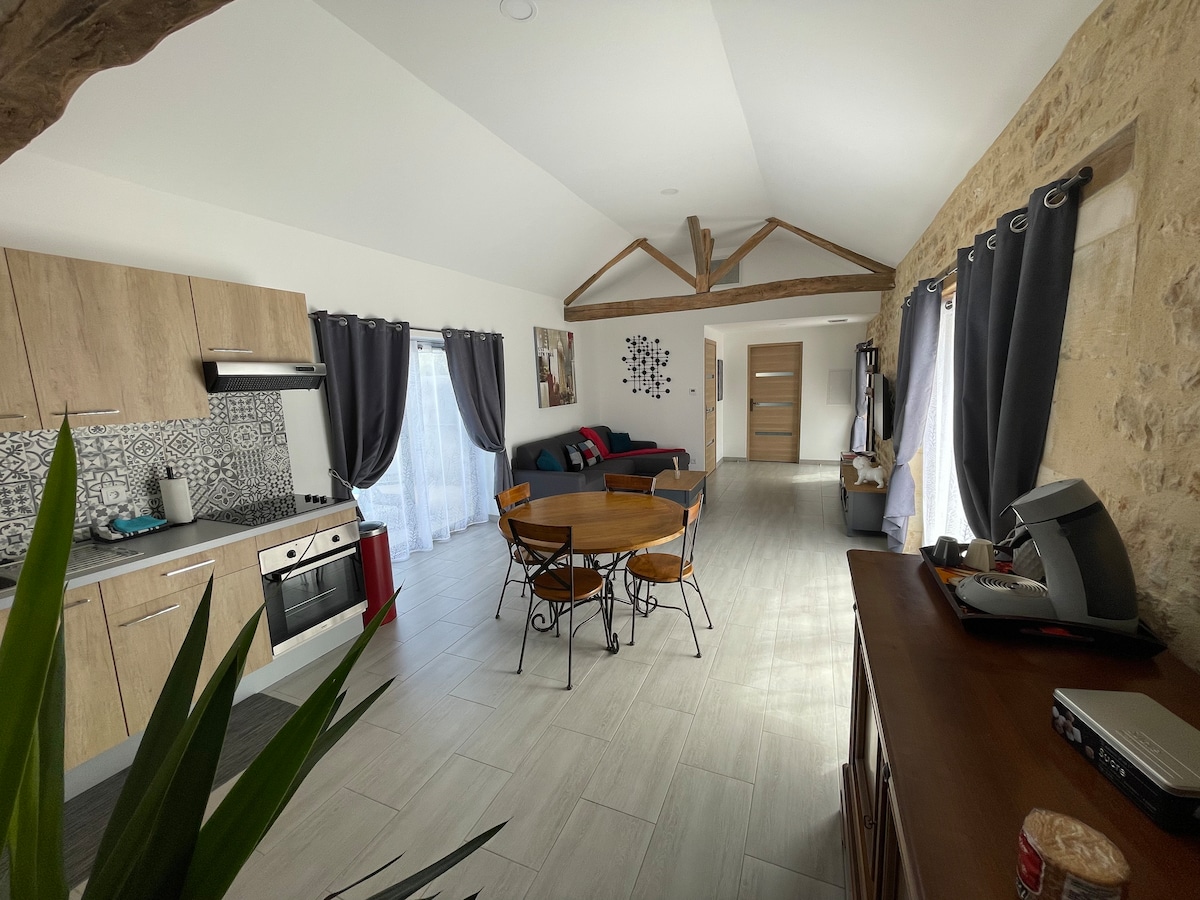 In a protected, hilly and wooded environment of Charente Limousine, traditional Charente house, completely restored, located in a one-hectare park. Large 50 m2 family room. Large stone terrace shaded by a stone pine. Wood-burning stove in the living room. Located on the edge of the village with direct access to the paths. Ideal setting for athletes and/or families who want to enjoy nature and animals: Horses, sheep, chickens are present on the property.