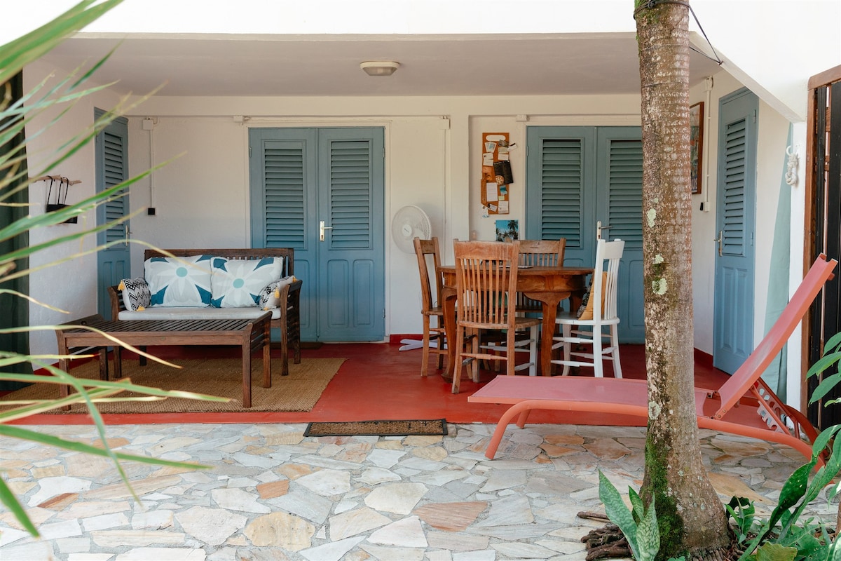 Charming apartment located at the entrance to the "Anse Caraibe" beach in Pointe Noire. You have 30 m2 interior and 15 m2 under the gallery We organized, furnished, and decorated it to immerse our guests in an exotic atmosphere. You can walk to the beach. This is a family beach that is very popular with Pointe Noire residents. The waters are exceptional, populated by turtles and a multitude of tropical fish.