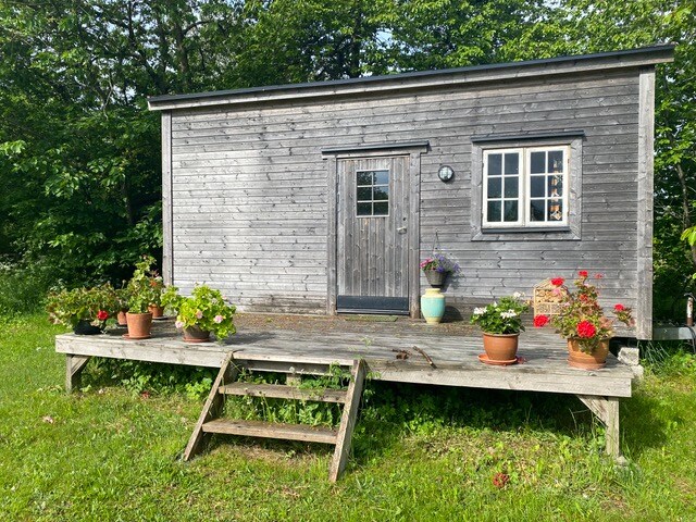 Cozy guest house located in a lush and scenic area on the outskirts of Rörum on Österlen. The house is completely new (completed in the spring of 2019) and offers everything you could possibly need in the smallest possible space! The floor plan is open. Access to kitchenette, with two hotplates, kitchenette, fully tiled bathroom, and upstairs sleeping loft. Enjoy the proximity to nature and swimming, Stenshuvud National Park, Knäbäckshusen beach and Vik's fishing village. Within walking distance, golf courses, Mandelmann's gardens and Franskans Crêperie.