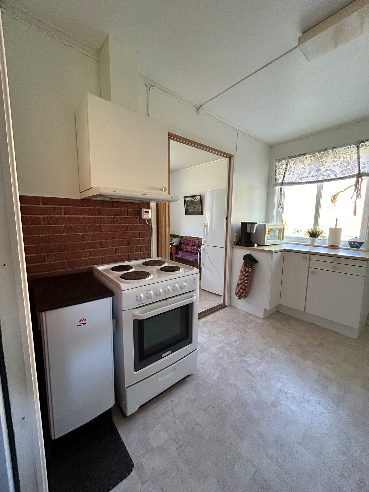 Samueltun (Øyri 12) is located in a protected small house area, in the heart of Vik in Sogn. The house is over 2 floors with bedroom on the 2nd floor and living room, bathroom, entrance and kitchen on the 1st floor. The property includes an enclosed garden with a pergola and furniture. Samueltun is located "in the middle of the butter dish" and has a short distance to shops, mountains and sea, and a delightful beach. The house has 2 bedrooms with a double bed, comfortable bedding, and two sets of pillows per sleeping space. Linen and towels are included.