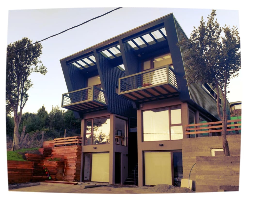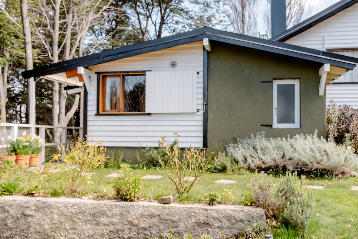 A refuge in front of Lake Nahuel Huapi. Beach and forest