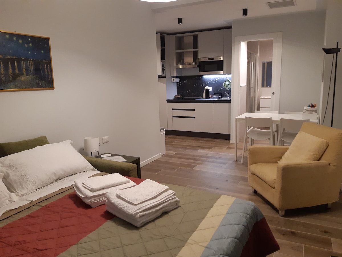 Intero alloggio con spazio esterno ad uso esclusivo, l'appartamento è composto da un ampio open space che include cucina completa di elettrodomestici ed utensili, zona pranzo e soggiorno con televisore accesso a NETFLIX e WI-FI, ampio bagno con doccia e vasca e due camere da letto matrimoniali. L'appartamento mette a disposizione bicilette per gli ospiti. Posizionato in zona strategica per chi viaggia ed a solo 20 minuti da Milano , 30 minuti da Como e dal lagho maggiore.
