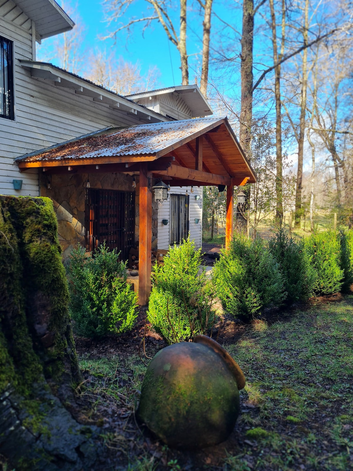 Forget your worries in this spacious and serene space Country house located 16 km from Villarrica, 13 km of asphalt and 3 km of gravel, it is 20 minutes from Lican Ray and 45 minutes from Panguipulli. It has a king size bed, two single beds and a sofa bed, and WiFi by Starlink. It also has a 7×3 meter pool. There are 60 hectares to enjoy with total privacy, where you can hear the birds singing and if you are lucky and walk through the forest you can see birds of prey and foxes.