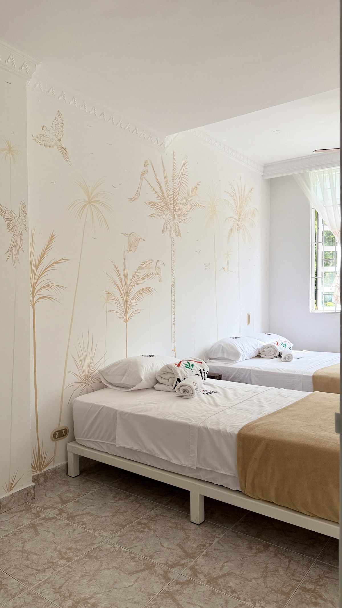 Habitación con 8 camas sencillas, lockers, dos duchas, un sanitario y un lavamanos, cada cama tiene un ventilador y conexíón al celular. Disfruta del fácil acceso a cualquier punto de la ciudad, a 5 minutos caminando de Unicentro, supermercados, bancos, restaurantes, farmacias. En el primer piso tenemos nuestro café de origen noble, y los fines de semana disfruta de nuestro bar y sus actividades.