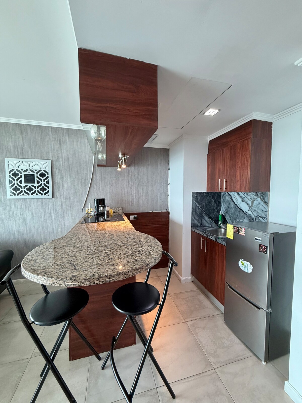 Enjoy a modern and elegant suite in the heart of Guayaquil, designed to offer comfort, style and practicality. Ideal for both business travelers and urban getaways, this space combines luxury and a prime location. It accommodates up to 3 people and has a fully equipped kitchen, air conditioning, high-speed WiFi and a Smart TV. Located a few steps from Malecón 2000, close to restaurants, shops, and the city's main attractions.