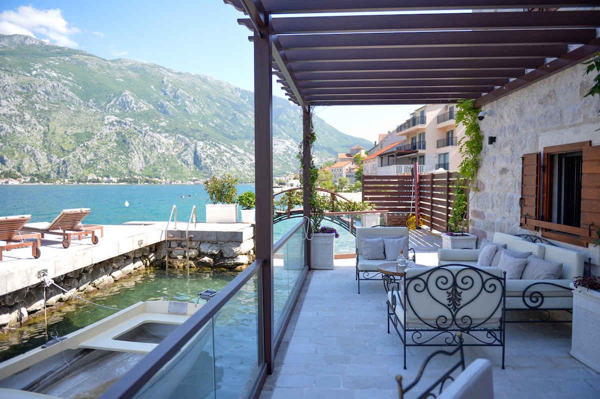 This waterfront old stone house was originally built in 19th century and completely renovated in 2018. The interior represents a mix of a traditional Mediterranean style combined with modern design. Set in a peaceful old fisherman village called Muo, our house is perfect base for exploring the Bay. The Old town of Kotor is less than 10min driving distance while Tivat airport is less than 20min away. The house has three levels and each level has undisturbed sea views.