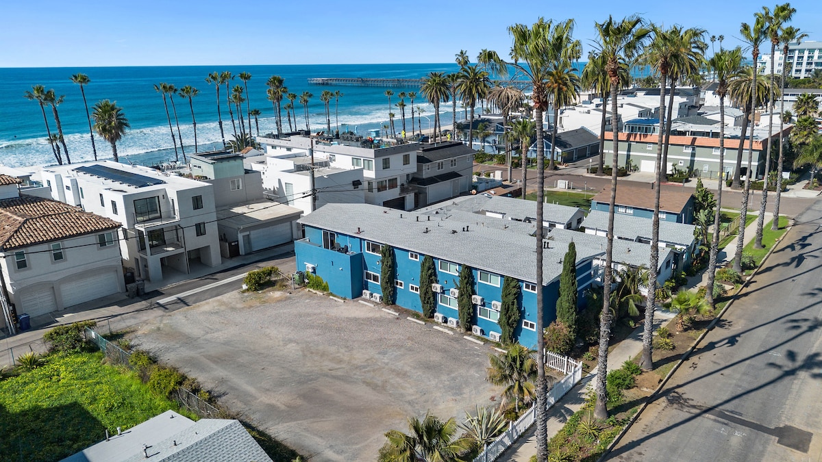 Stay, play, and explore from this sunny coastal studio, only steps from the beach and Carlsbad Village. The village is home to every imaginable type of retail store and restaurant, and it's only 5-10 minutes away! The studio has everything you'll need with a modern kitchen, AC, open living with a big comfy bed, and a sunny little patio to enjoy the endless Californian sun. Keep entertained with access to streaming apps on the smart TV, take a towel and lay on the sand or pack the surfboard to ca