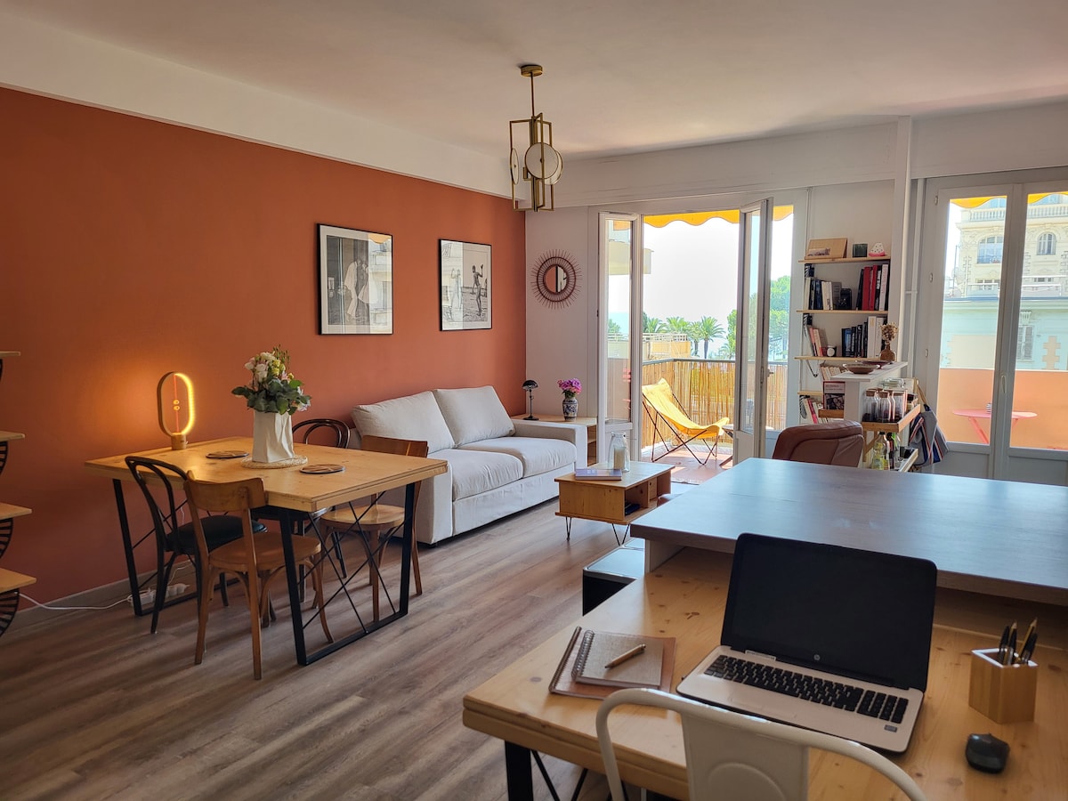 This spacious 80m² air-conditioned in the leaving room, one-bedroom apartment with a 5m² balcony has a contemporary design and all the comforts to make your stay in Nice pleasant: bathtub, balcony and WIFI. Located at the 1st floor with elevator on the famous Promenade des Anglais it offers a panoramic sea view. Its ideal location allows you to explore the entire center of Nice on foot. Many shops are nearby. A stay in love or with friends is ideal!