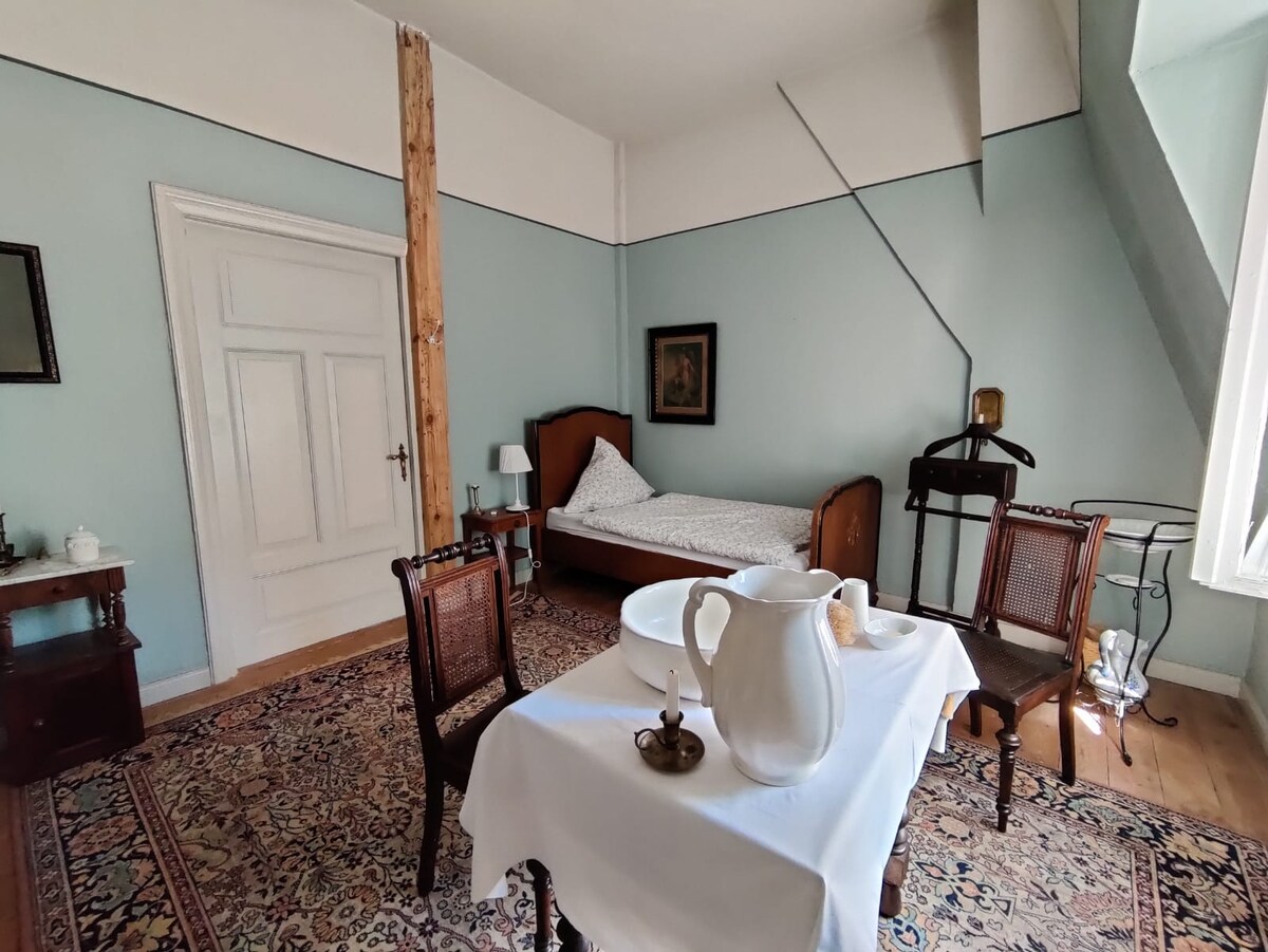 Welcome to Lühburg Castle in Mecklenburger ParkLand, 30 km southeast of Rostock. Are you looking for peace, nature and relaxation? Then you've come to the right place! Whether families or couples - we have different apartments for almost every taste. A family atmosphere is important to us! The "Zofenkammer" is a cute little apartment with a fireplace for 2 - 4 people. It is located on the 2nd floor overlooking the southeastern Lindenallee and the Ehrenhof and is partially furnished with antiques.