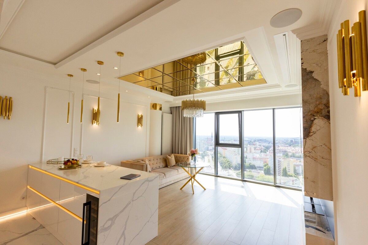 Apartament na 16. piętrze w samym centrum Szczecina to idealne miejsce na relaks. Pokój wyposażony jest w łóżko king size, telewizor i kominek elektryczny, który tworzy przytulny klimat. Aneks kuchenny posiada piekarnik i płytę indukcyjną, a łazienka – nowoczesny prysznic. Goście mogą korzystać z tarasu widokowego na 27. piętrze oraz strefy wellness z basenem, jacuzzi i dwiema saunami, zapewniającymi pełen komfort i odprężenie. Awaria indukcji, dostępna tylko płyta turystyczna. Naprawa do 23.02.