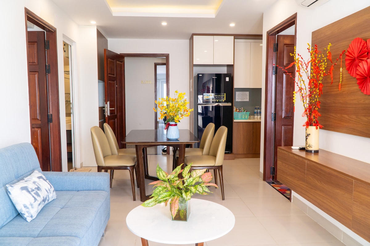 A modern, well-equipped studio apartment just minutes walking from Back Beach (Bai Sau). Walking distance to Lotte Mart, pharmacy, local market and convenience store. The Apartment is a perfect fit for a family of 4 with one bedroom with extra bed, kitchen, huge living room, comfortable shower, refrigerator, dinning table, working desk, closet and huge Wifi TV with Youtube.
