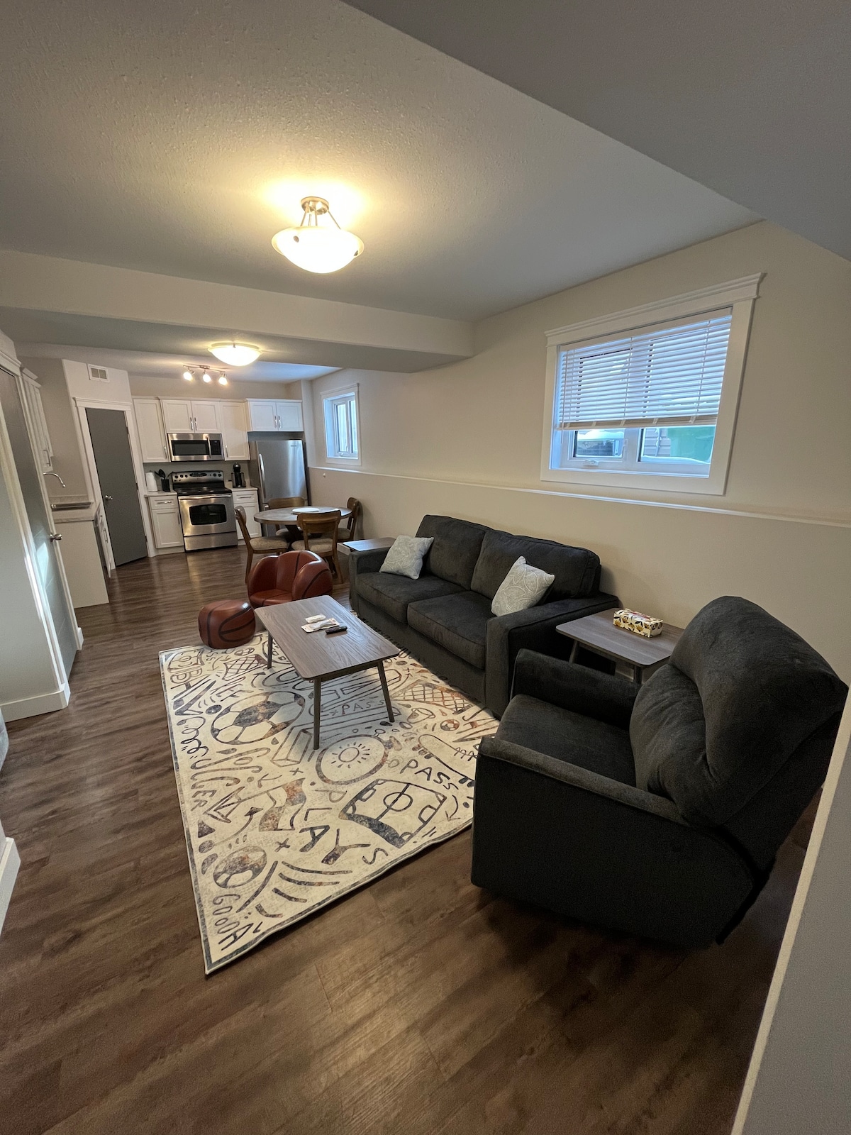 Kick back and relax in this calm & stylish 2 bedroom home designed to feel like home, even though you are away from home. 1042 sq/ft of space on the main floor; you'll find 2 master bedrooms (for a maximum of 4 adults), a luxury 5pc bathroom, laundry, a fully equipped kitchen, coffee bar, dining room, living room with an electric fireplace, and ample off-street parking. Whether you travel for business or leisure, we aim to provide you with the most comfortable stay and Airbnb experience.