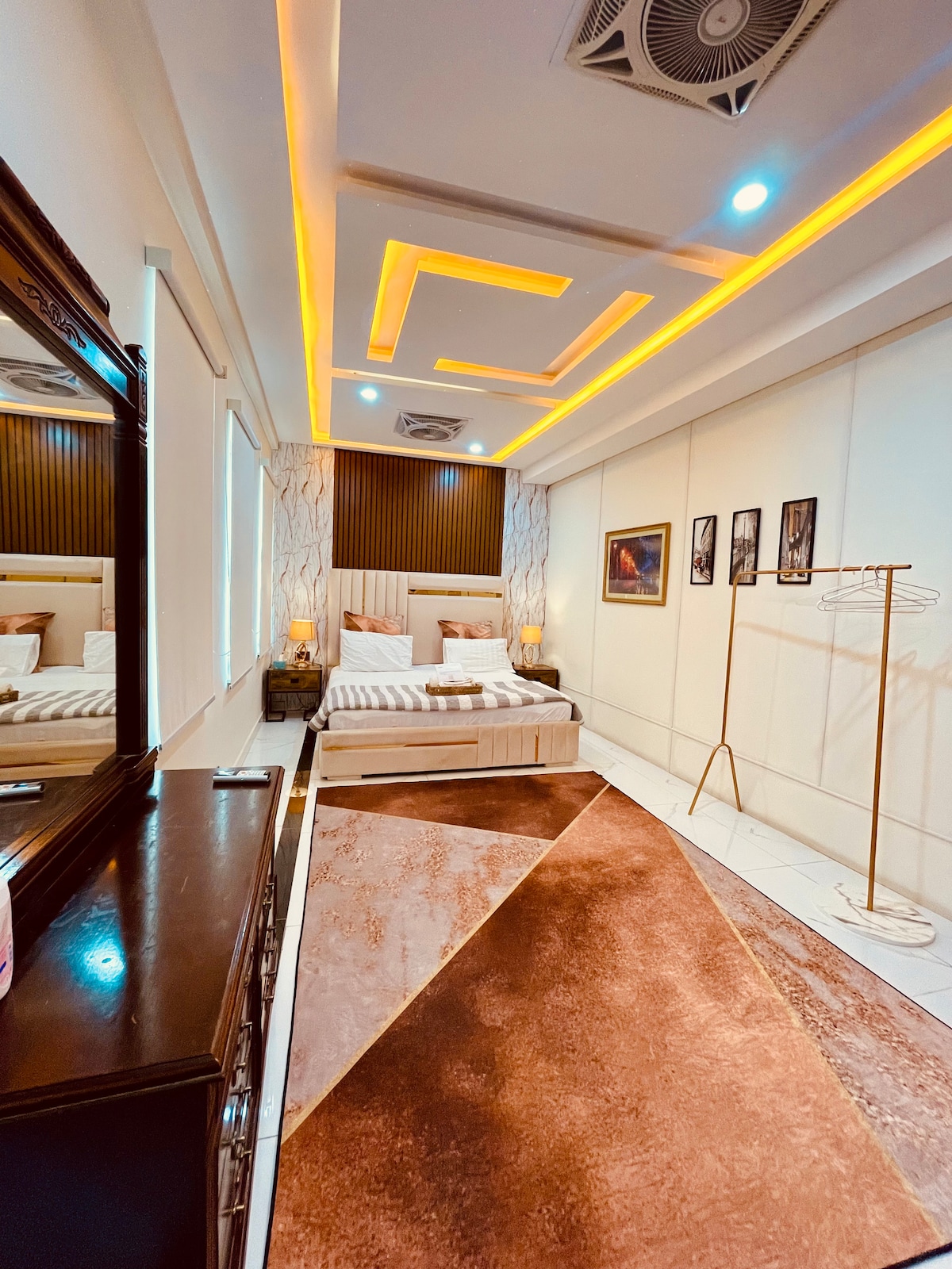 Welcome to your ideal retreat in Lahore where luxury meets convenience! You'll be close to : Grand Jamia Mosque (1 km): 1 of world largest mosques,EIFFEL TOWER(1.5 km): Enjoy breathtaking city views.SAFARI ZOO (2 km): A fun-filled wildlife experience JASMINE MALL (0.5 km) BAHRIA GOLF CLUB, Delight in flavors at SAFFRON, MANHATTAN BITES, MCDONALDโS, OPTP, and The Clove all nearby! BAHRIA INTERNATIONAL HOSPITAL (1 KM) Stay with us for an unforgettable experience in the heart of Bahria Town!
