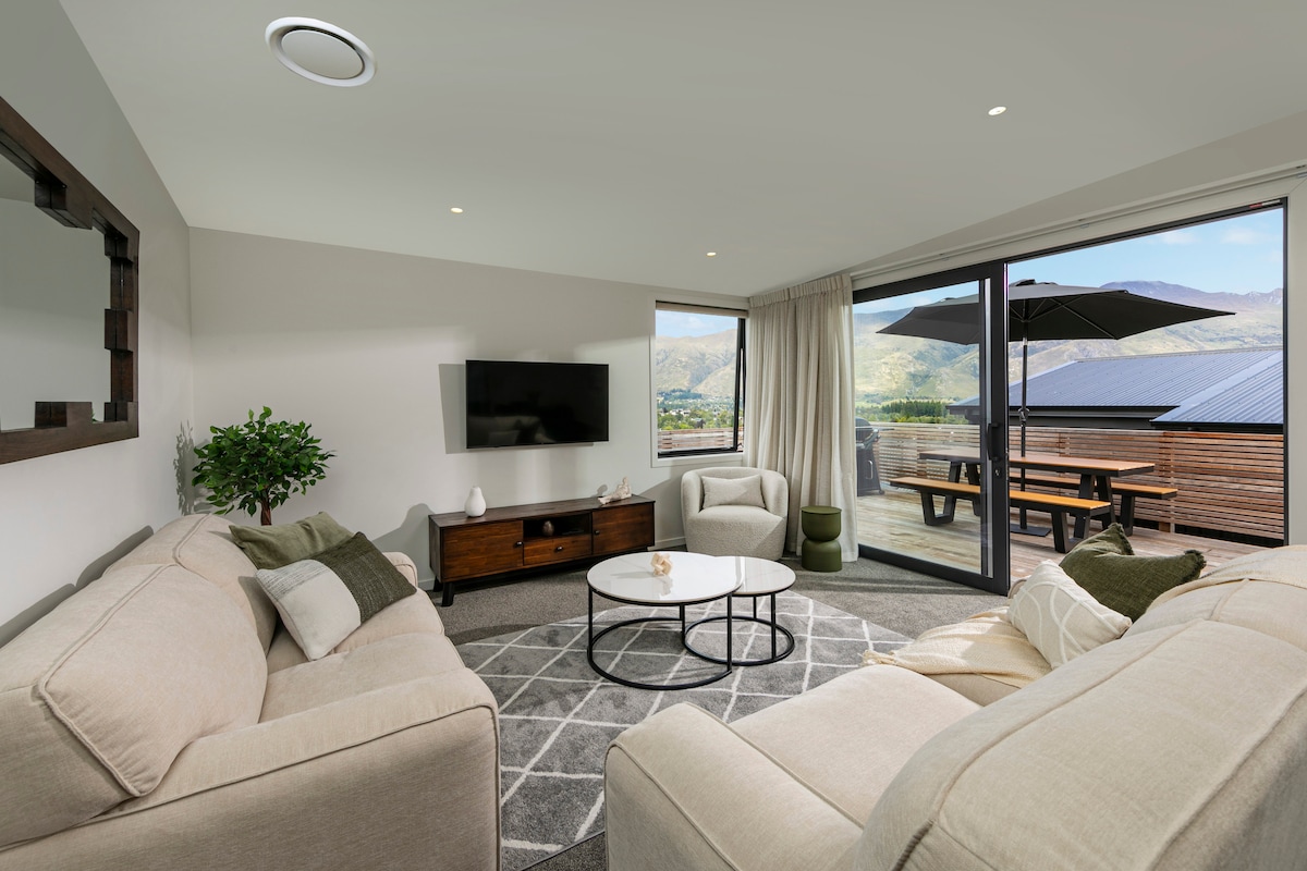 Escape to this contemporary family retreat, ideal for a relaxing holiday. The spacious open-plan kitchen, dining, and living area is bathed in natural light and flows to a large deck with stunning lake and mountain views. Enjoy the convenience of an additional lounge, fibre WiFi, smart TVs, and other entertainment options. Stay cosy year-round with a fireplace, heat pump, and comprehensive heating throughout. Experience the beauty of Wanaka in comfort and style—you may never want to leave.