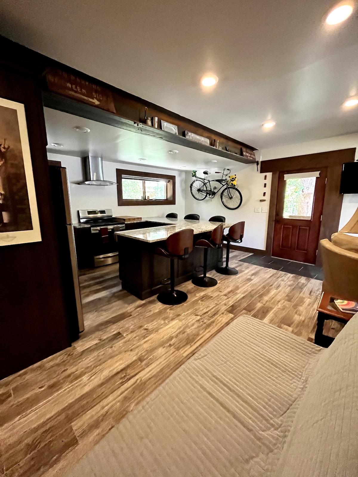 Keep it simple at this peaceful and centrally located guesthouse. This private space features a comfortable bedroom, an inviting living room with additional sleeping accommodations, a clean and functional bathroom, and a fully equipped kitchen for easy meals. Soft lighting and thoughtful details create a calm, welcoming atmosphere, ideal for relaxing after a day exploring the mountains or the Park City area.