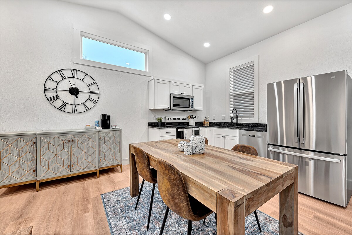 Welcome to our charming Siloam Springs getaway, where modern comfort meets Southern hospitality! Nestled just steps away from downtown, this stylish guest house is your perfect retreat with a pool for ultimate relaxation. With private access, 10' vaulted ceilings, 70" TV in the open concept living/kitchen/ dining area, custom tiled walk in shower, and top of the line Queen size bed in bedroom, you will be surprised how big the space feels and functions. The couch makes into a comfy queen bed.