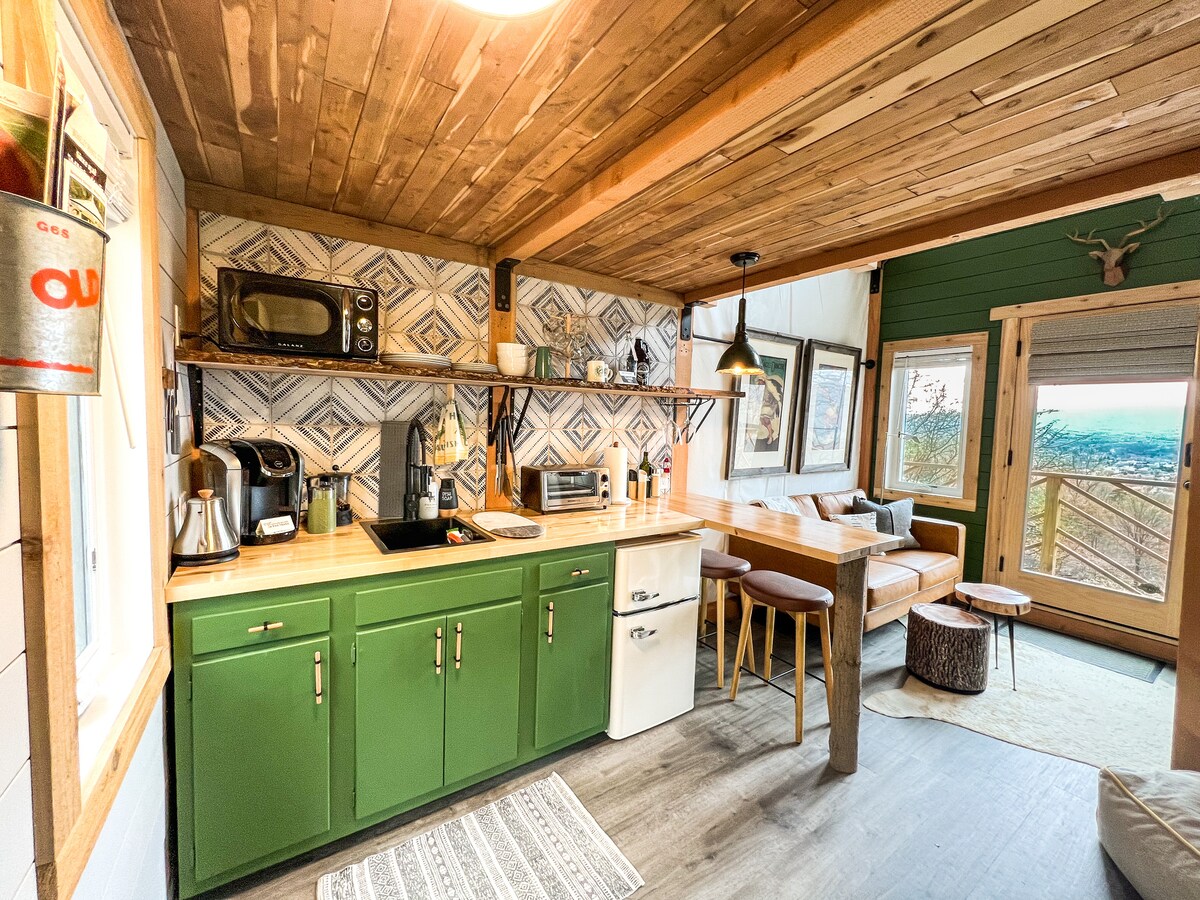 Reconnect with nature in this unforgettable tiny house. Perched on the top of a ridge offers great views of the mountains. Modern contrasting interior with the charm only a tiny house can bring. The mountains from three different states (PA, MD, WV) can be seen from within the tiny house. Sitting on the edge of 275 acres of farmland means you will be sure to hear the turkeys gobble during the daytime or the whippoorwill at night. Relax and enjoy the scenery from the loft bed.