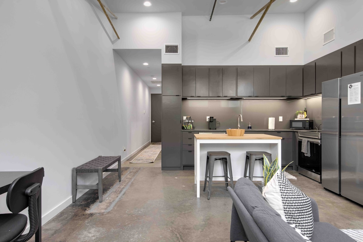 Perfect for short downtown stays. This modern industrial loft sleeps 2 and features self check-in, free parking, a fully equipped kitchen, and a shared game room for relaxing after a day out. Professionally cleaned and fully reset between every stay, it’s steps from restaurants, cafes, bars, museums, festivals, and parades — all walkable without a car. Ideal for quick trips, events, or weekend getaways.
