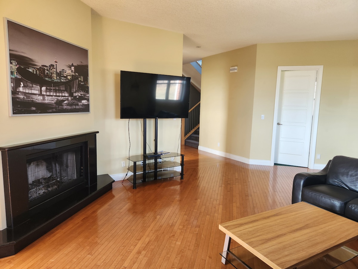 This licensed vacation home offers stunning views of Ghost Lake and the eastern slopes of the Canadian Rocky Mountains. It is situated in the Wildcat Hills on a 20 acre property with many sightings of wildlife. The house is a custom built, 3 bedroom modern style bungalow with vaulted ceilings and exposed wooden beams. The west side of the home is approximately 80% windows, which allows you to take in the amazing views. Enjoy easy highway access, with only a 12 minute drive to all city amenities.