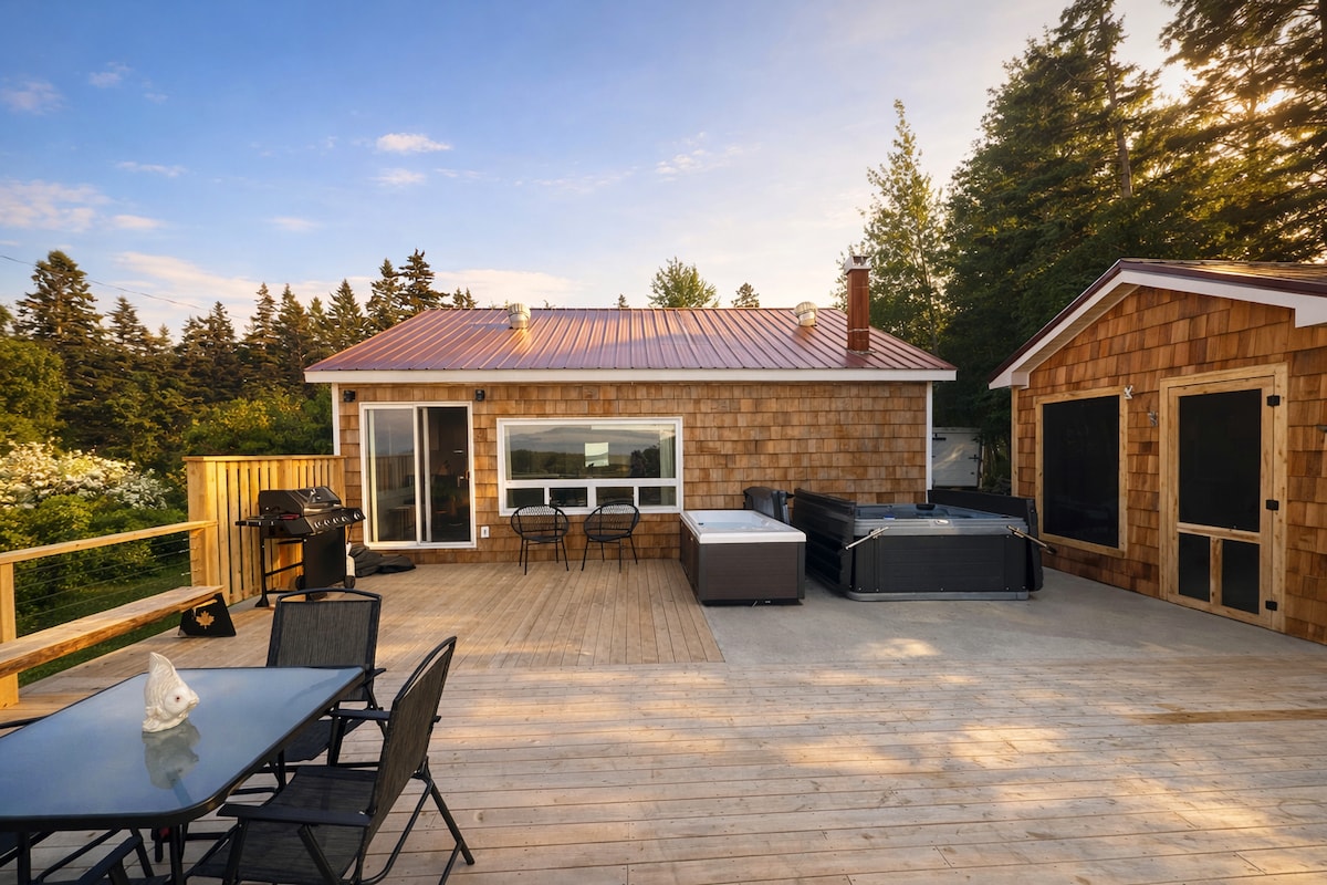 Our rustic cabin is the perfect space for those who want to enjoy a cozy, nature inspired getaway with quick access to St. Stephen, St. Andrews and the U.S border. Unwind in the bubbling hot tub after a day of exploring and then enjoy the beauty of a crackling fire, or cozy up inside and indulge in a movie marathon. "Our charming cabin accommodates up to 4 guests, with one queen-sized bed and a double pull-out sofa. We warmly welcome you to unwind and relax in our rustic, cozy cabin.