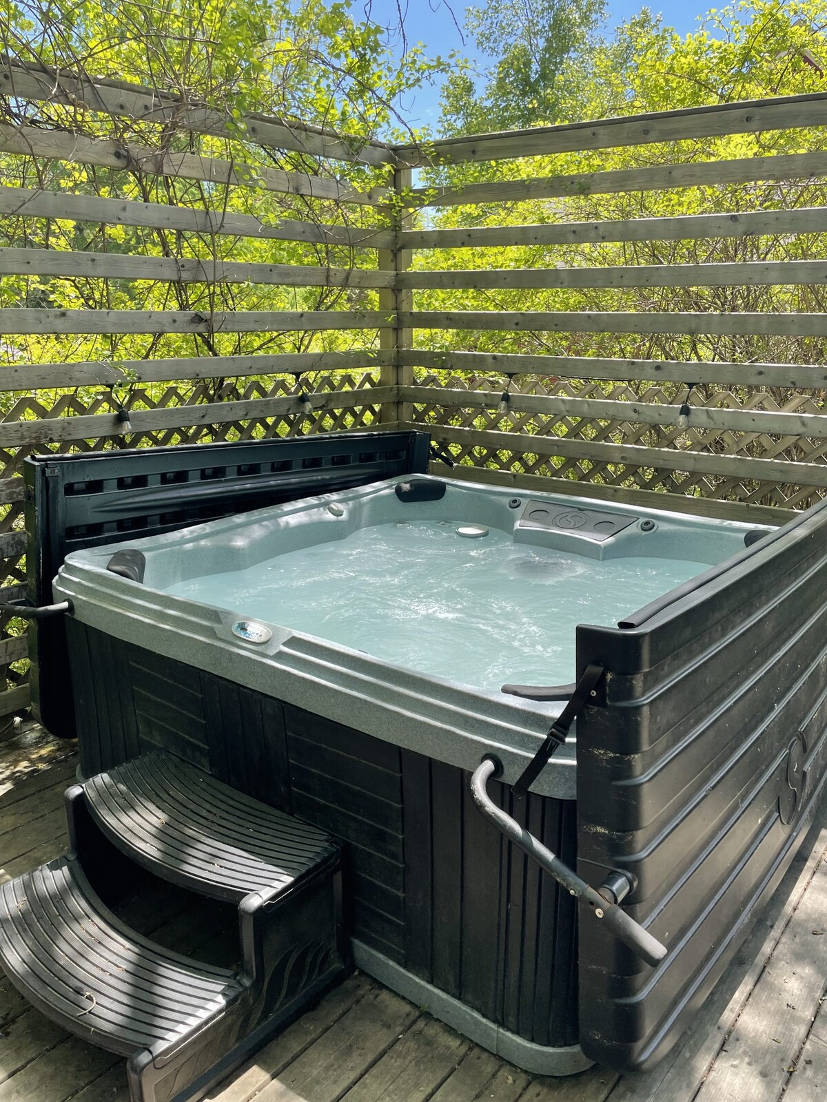 Escape to an enchanting cottage retreat, nestled on the shores of Moores Mills lake. Immerse yourself in the serene beauty of nature as you soak in the hot tub and gaze out over the tranquil waters. Everything you need to make beautiful memories! #cozycanadiancottage ✅ Swimming, Kayaking ✅ Fishing, Pedal boating ✅ Arcade Pac-Man, Record Player w/ 45’s ✅ Bonfire pit - free firewood ✅ Outdoor BBQ ✅ Sleeps 6: 2 King, 1 Queen bed ✅ 51 inch Smart Roku TV ✅ Amazon Prime, Roku ✅ Screened inporch
