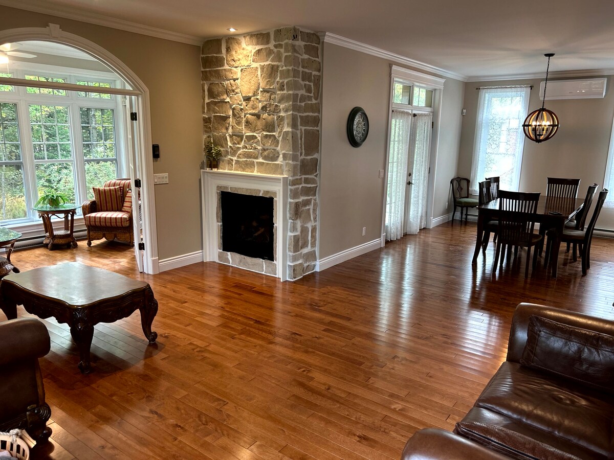 Welcome to Maison Hatley, built in 1884, which combines elegance and modern comfort to offer you a unique countryside experience. You will be charmed by the outdoor area, featuring a fabulous 42 foot long heated lap pool and a summer lounge that allows for pleasant meals sheltered from rain and mosquitoes. The cozy beds, the large kitchen with its central island, and the 2 living rooms with gas and wood fireplaces will make your stay as comfortable as a hotel.