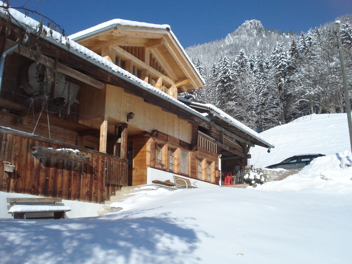 Surrounded by beautiful mountains, clear mountain lakes and green meadows, (Diemtigtal Nature Park) in winter with white landscape is our house. The valley and its surroundings offer biking, downhill biking, climbing, paragliding, fishing, swimming, skiing, sledding, snowshoeing, ski tours and much more