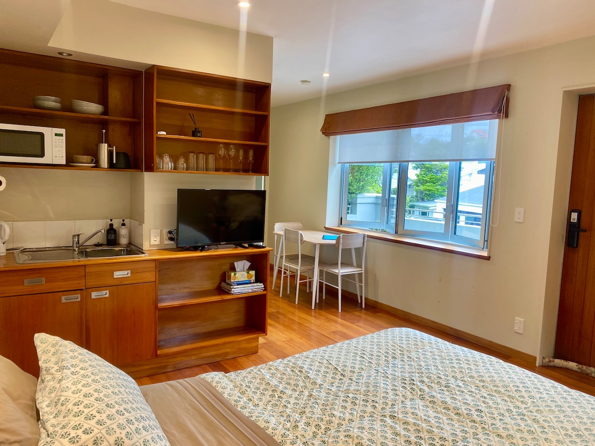 Enjoy a cosy, stylish stay in this one room central studio in quirky Left Bank arcade. Directly off iconic Cuba Mall in the heart of Welly, this inner-city sanctuary offers super easy access to Wellington's sights, activities and fabulous cafes/artisan stores. Well-stocked kitchenette, open alcove for artistic/office/extra space. New comfy queen bed and fold-down king single. Open for longer term stays. A little oasis in amongst the urban murmurings of the most interesting area in the city.