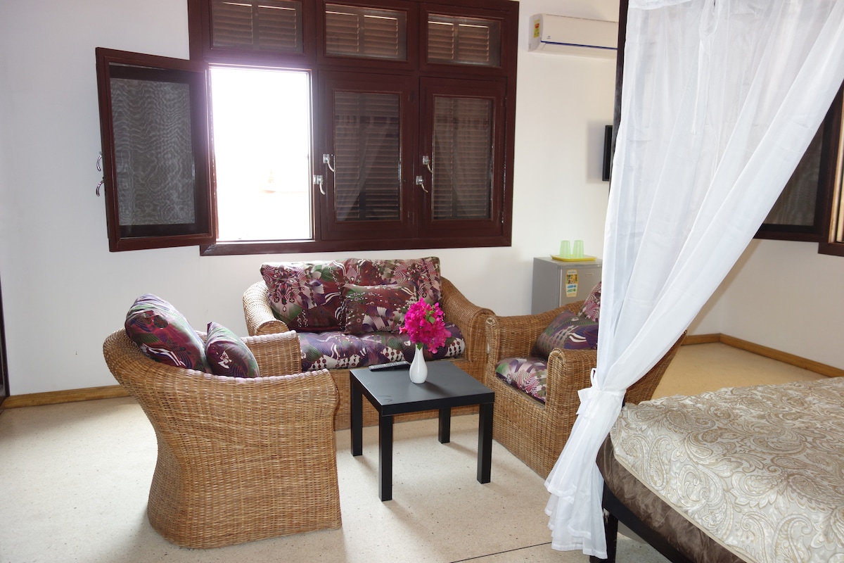This is a large open plan suite in a B&B facility(breakfast included), perfect for a visiting business or leisure visitor. With a small kitchenette and private ensuite bathroom, it's a mini home away from home. We're located in one of the prime residential areas, just a few minutes drive from the international airport and the busiest mall in the city - a convenient starting point to get into the city or venture out to the satellite towns.