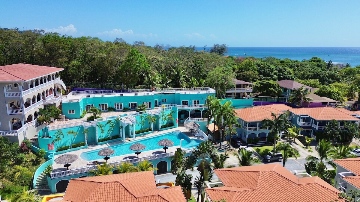 Spend your beach vacation enjoying the wonderful Roatán sun right from the comfort of this condo. Also you have access to the community pool! Beautiful and well-equipped condo with spacious balconies & home comforts, the coziness of this unit will make you feel at home! Located in the heart of the West End, just a short walk away you can swim in the crystal clear waters of West End Beach and enjoy amazing local cuisine (all within walking distance of the unit).