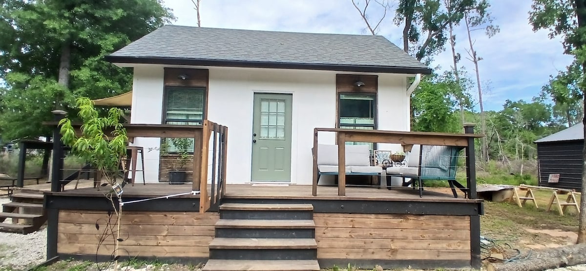 This adorable, well-appointed tiny home, situated in a quiet neighborhood, comes complete with everything you will need for a relaxing getaway. You will have access to the private boat launch, fishing pier and covered picnic area only a block away so bring your fishing gear, boat or water toys.
