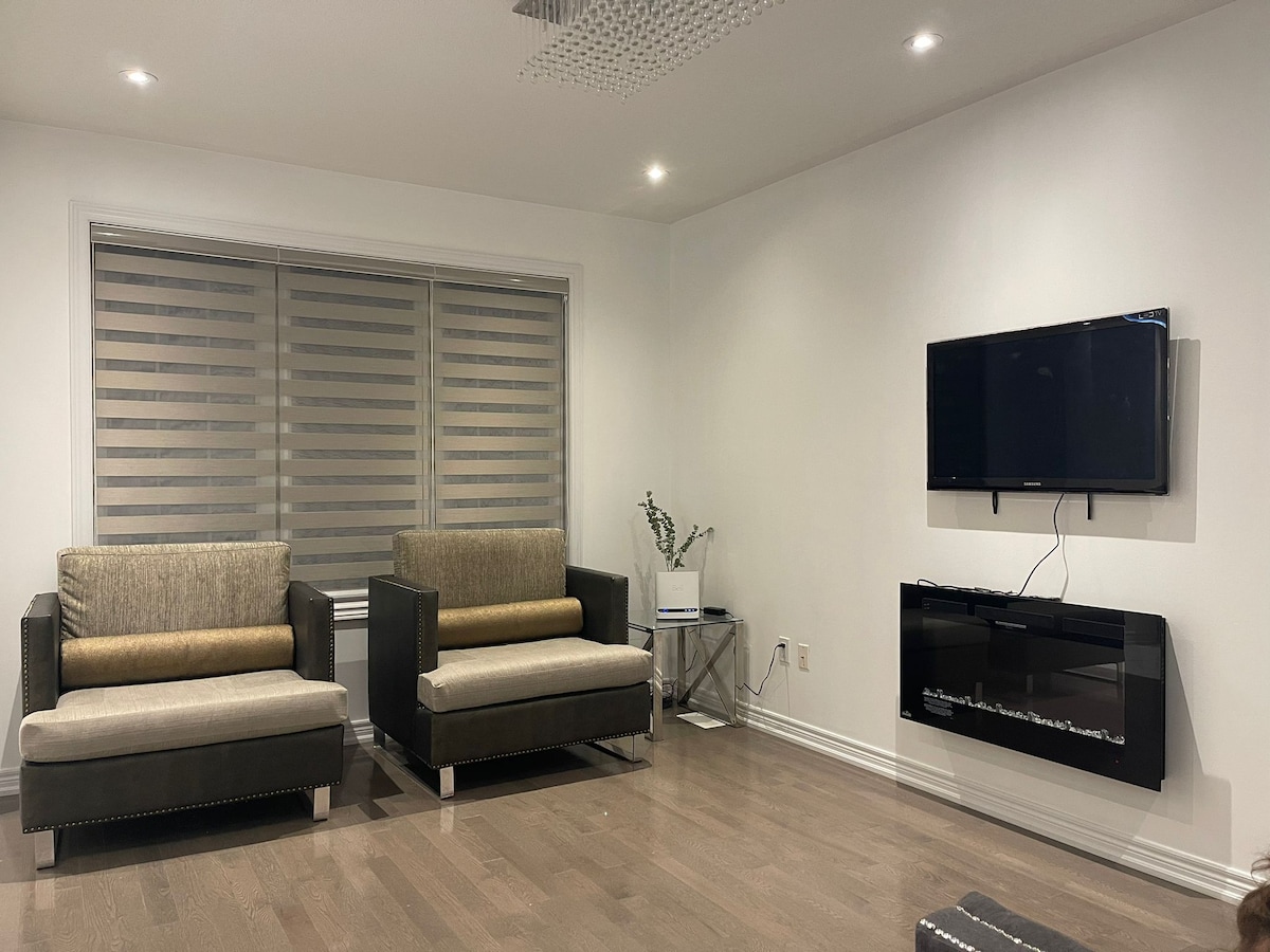 COZY and INVITING, this modern suite is in a quiet, family-friendly Ajax neighborhood. Just 10 minutes to Thermea Spa and Ajax GO Station, and a short walk to parks, shops, and groceries. Newly built with deluxe finishes, the 1,000 sq. ft. space includes in-floor heating, an electric fireplace, a spacious sofa, and smart TV with Netflix/Prime. Downtown Toronto is 35–45 mins by car, and Pearson Airport or Mississauga in about 55 mins.