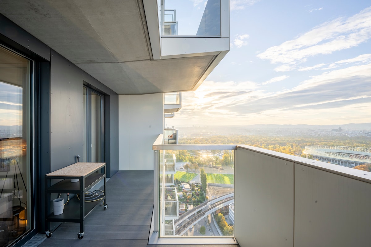 Enjoy a stylish experience at this centrally-located place. you are in walking distance of the main train station. you can travel directly from the airport. you will have a view over Vienna, can walk right into the city center or use the Subway No1 and a lot of tramways. Supermarkets nearby and you can freely use the sauna as well as the well equipped Fitnessstudio