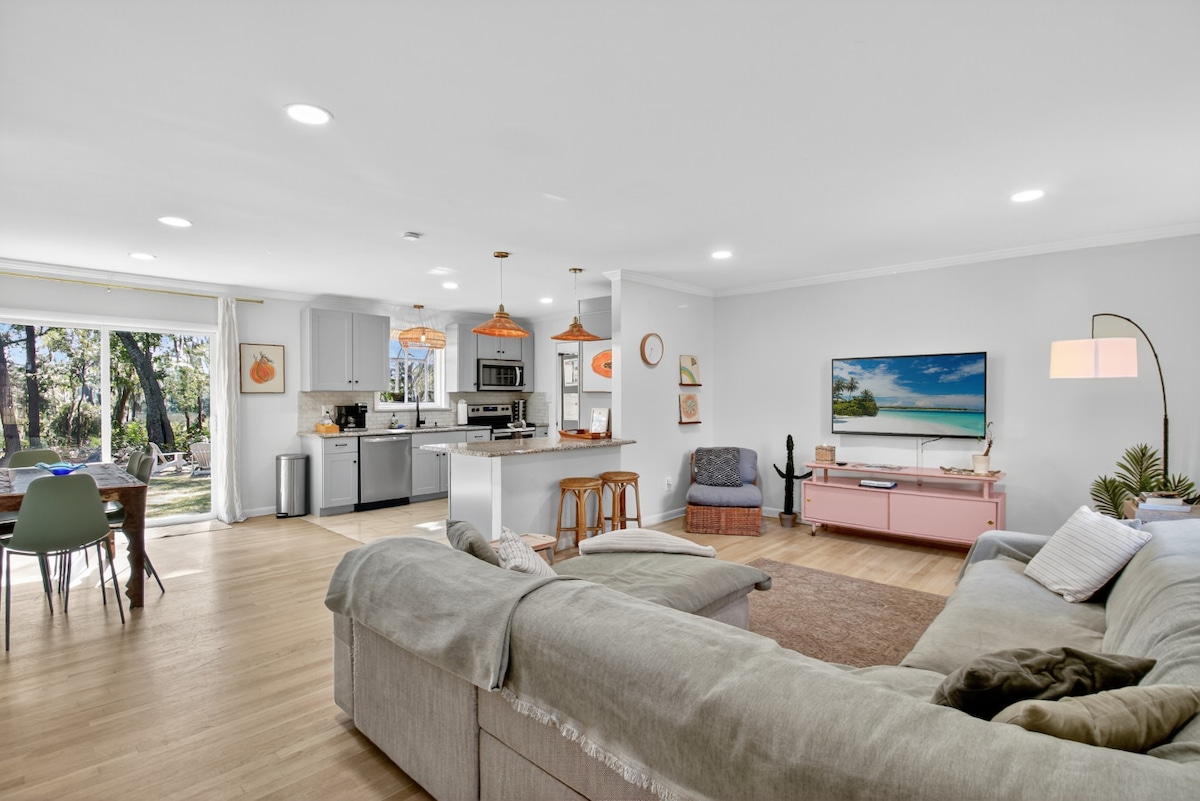 This spectacular single-family home sits on a large, private, maturely-landscaped lot. The expansive front yard is well-appointed with the Lowcountry's famed majestic Grand Oaks and Folly Beach Sabal Palms. This home was professionally and meticulously designed to include all modern amenities and upgrades while retaining the simple and quaint nature of a classic Folly Beach home. A quick walk or bike ride to Folly's best dining, shopping and nightlife, and only steps to the Atlantic Ocean.