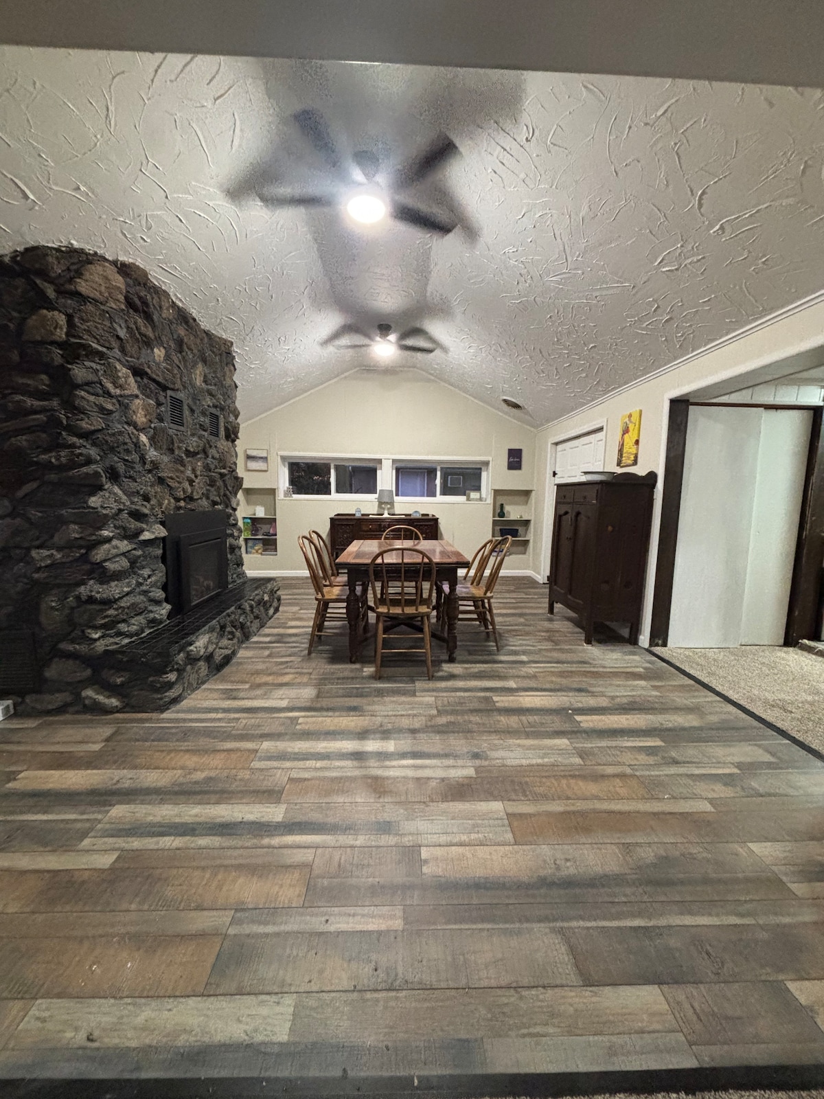 Welcome to The Shoe Inn! You'll be at the center of town within walking distance to all the places you need to be: banquet halls, five bars, restaurants, Wessel's grocery store, ice cream shop, church, hardware store, and community parks. Smart lock, contactless entry is available for a convenient & safe stay. Enjoy the full size washer & dryer (no detergent provided) , fireplace, kitchenette (no stove), free parking, Samsung 50" smart TV w/ 100's of cable channels, Alexa device, & free WiFi