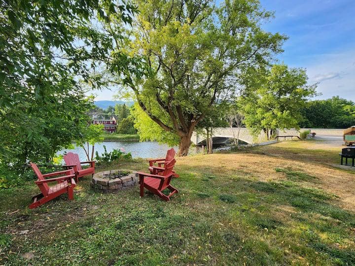 Situated directly by the Ausable River and surrounded by beautiful vineyards and gardens you will be immersed in nature at any time if the year. It's sure to restore the soul. The gentle rumble of the river is ever present as you look out over the natural beauty. During the summer cool off in the river and come back to the screened in porch for an evening meal. In the winter fire up the pellet stove and get cozy. 15 minutes to Whiteface and Keene and 25 Minutes to Lake Placid.