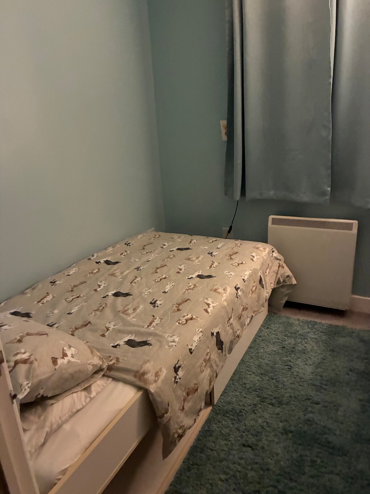 I provide this small annexe ,purpose built, at the side of my house with its own private entrance, parking outside. It provides a double bed in clean bedroom with TV .There is an en suite bathroom with shower , basin and toilet . Towel provided. There is a small lobby / storage area with microwave, small fridge , toaster and Kettle . I provide cereal , bread , butter , marmalade , marmite , tea , coffee , hot chocolate , peppermint tea and oat milk .