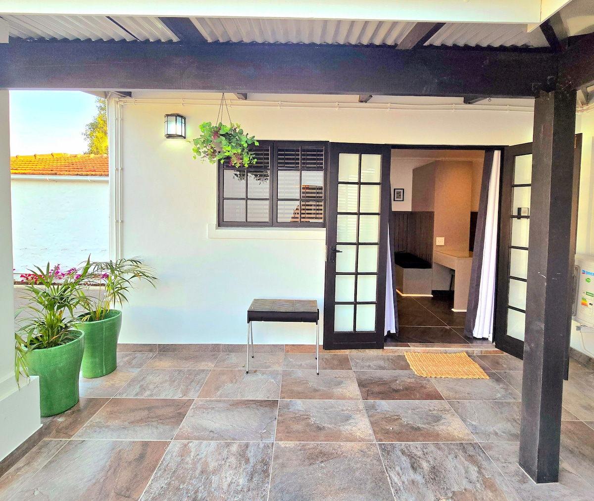 My little flatlet is close to everything! Go and enjoy some waves on the beach and come home to discover the nighttime-vibes in Florida Road on foot. Feel at home in our cosy, creatively decorated, air conditioned, self catering flatlet. A great space to work or chill. I’m looking forward to hosting you!