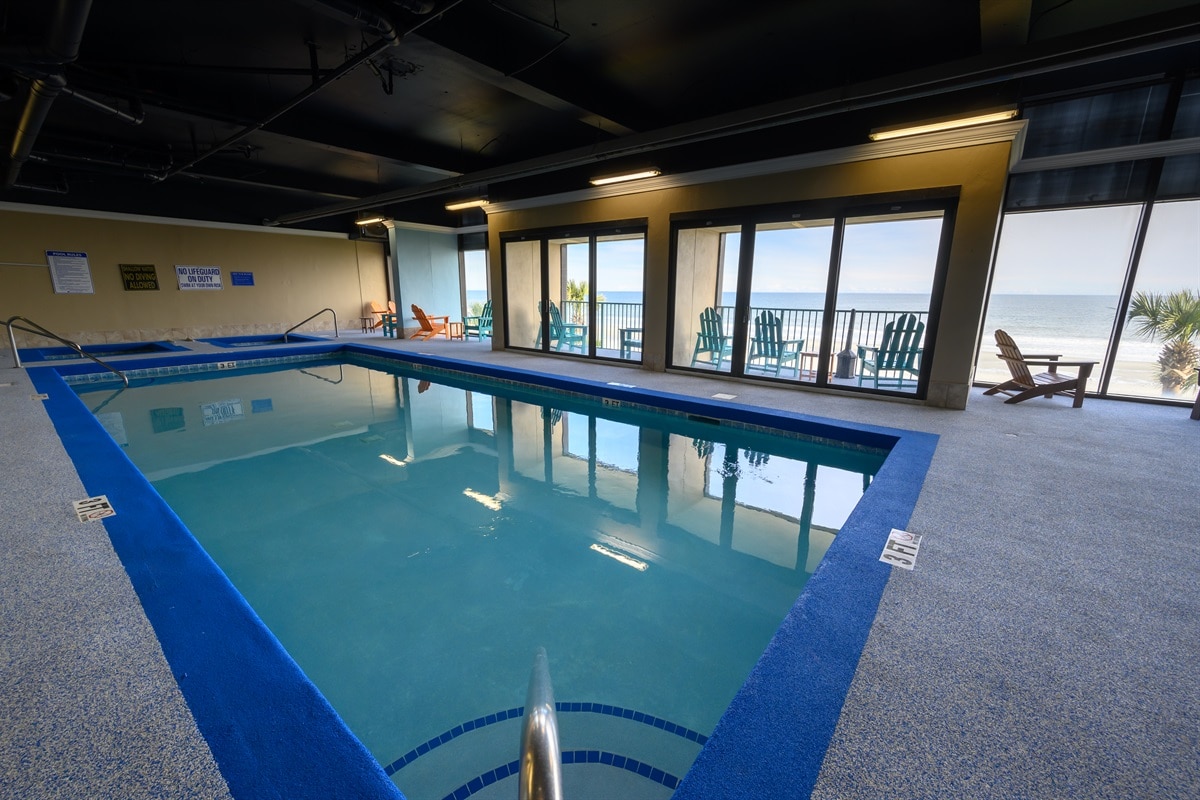 Luxury Vacation Villa in North Beach Resort & Villas, North Myrtle Beach. 60 Acres Oceanfront Bliss with Soft White Sand Beach, Refreshing Salt Water Warmed by the Gulf Stream and the Year-Round Sunshine. 2.5 Acres of Caribbean-Themed Pool Amenities Featuring Multiple Pools, Large Sun Deck Space, Personal Cabanas with Butler Service, Hot Tubs and a Swim-Up Bar. The Grand Strands Only Swim-Up Bar! Swim all Year Round in the Indoor Pool Complex with a Lazy River.