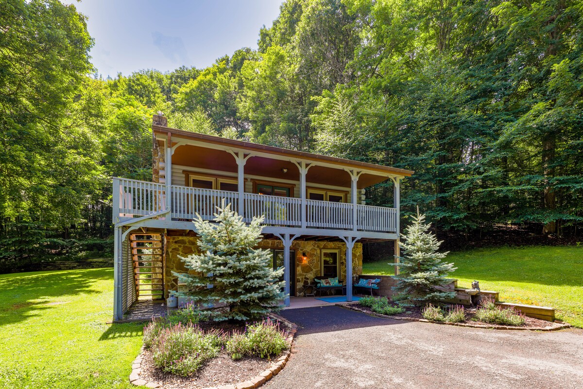 Nestled high amidst the sturdy branches, "Bird's Eye View" is a sanctuary suspended between earth and sky. Located less than 5 minutes from Deep Creek Lake and perched among the foliage, our treehouse offers a panoramic perspective of the surrounding forest, granting its visitors an unparalleled vantage point to observe nature's wonders. Relax in the hot tub and take in an amazing sunset. The home is a harmonious blend of locally-crafted art and furniture to add rustic charm and modern comfort.