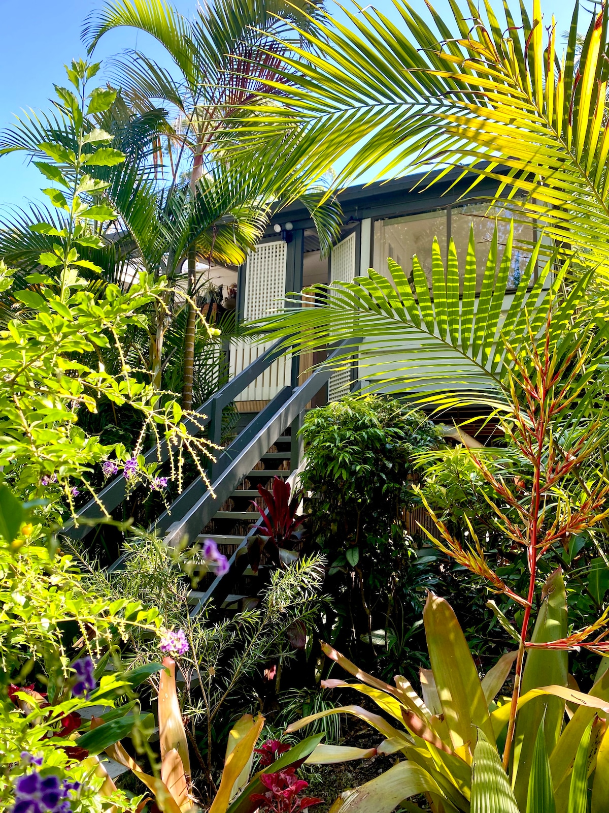 A spacious suite in a new architect designed home set in extensive gardens on a 1.5 acre property located in Mount Tamborine’s dress circle. Mount Tamborine is a stunning environment, on top of the range 40 minutes drive from the Gold Coast. At 535m above sea level, the red volcanic soil and a good rainfall ensures a lush environment thrives that is home to a wide range of bird life. The mountain is also home to several vineyards and breweries, a distillery, many many restaurants and cafes, a host of curiosity shops and two farmer and craft markets each month. The mountain caters for those who love nature with many bush walking tracks. It is also the gateway to O’Reillys, Lamington and Binna Burra national parks. Sunset on Handglider Hill over looking Canunga with a glass of wine in hand is not to be missed. This architect-designed house is set on a 1.5-acre property near Mount Tamborine. The area's red volcanic soil and good rainfall ensure a lush environment for a wide range of birds. The area is also home to vineyards, breweries, and many restaurants.