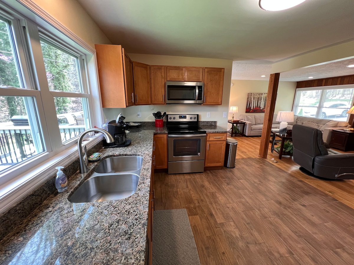 The Madera Madre - the “mother wood” gives life to the visceral vacationer and warmth to the weary traveler. Settle in with ease to your home away from home, nestled in a quiet neighborhood just a 5 to 7-minute drive from downtown. This private dream pad is the ideal hub for couples, friends, and family to explore everything Asheville. Recharge in the high-end Serta iComfort® bed with adjustable frame for an unbeatable night’s sleep! Fully equipped kitchen. Professionally cleaned!!