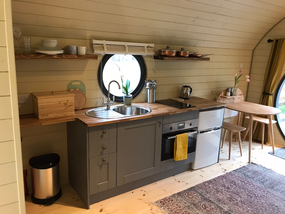We are situated in a unique position overlooking Dore Abbey within the Golden Valley. The pod is furnished to make it light and airy with all mod cons including TV, wifi, DAB radio, a modern kitchen and shower room. Although it is modern it has a country/Scandi feel and offers guests uninterrupted views out to open countryside and the 12th Century Abbey. There is a private patio which is perfect for enjoying a coffee and taking in the Abbey and surrounding farmland.