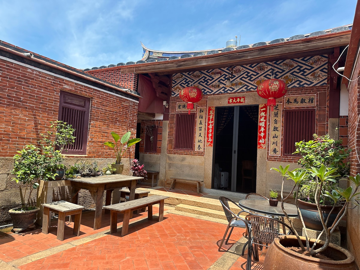 Welcome to a unique accommodation in the middle of the natural village of Kinmen Island. We only accept one group of guests per day, so you can fully enjoy the entire space. Our accommodation has a rare Minnan architectural layout, an early private school building form, with two quiet courtyards, so you can feel the unique ancient charm. About 10 minutes drive from all the attractions on the island, it is convenient for you to explore the local customs of Kinmen. It only takes 5 minutes to walk to the nearest Family Mart convenience store, convenient living. We offer a comfortable space for 8 people, including a standard four-person room, a standard double suite, a double suite, and a spacious living room, so you can feel at home during your trip. Looking forward to your visit, let's spend a pleasant time together in this ancient and beautiful land.