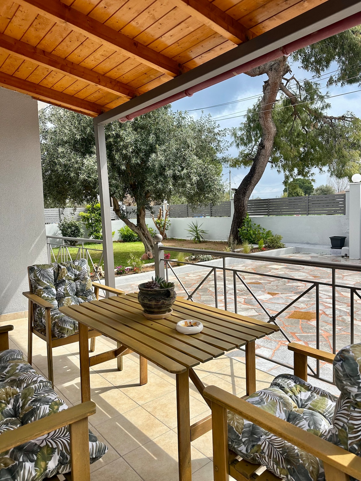 (Early Check-In available upon request) Welcome to Tree Haven, the first Tree-Themed home in Greece. Located just a 7-minute walk from the beautiful Kourenti Beach in Chalcis, this charming 47 sq meter abode is the perfect spot for your island getaway. Step into your private oasis and unwind on the inviting patio, where you can sit back, relax, and enjoy the serene atmosphere.