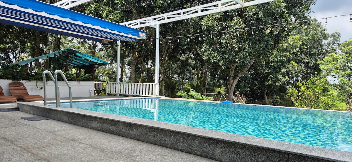 Special 20% discount for the first 10 customers. Welcome to our farm, where you can live close to nature. Full amenities for families with children, including: - 4 bedrooms (up to 16 people); - Swimming pool, football field, badminton court, pool table, outdoor grill, leafy hut for gatherings, karaoke, and fresh vegetables from our garden. Just 15km to Binh Chau Hot Springs, 30km to Ho Tram Beach. Hope you have a memorable experience reconnecting with nature with your family and friends.