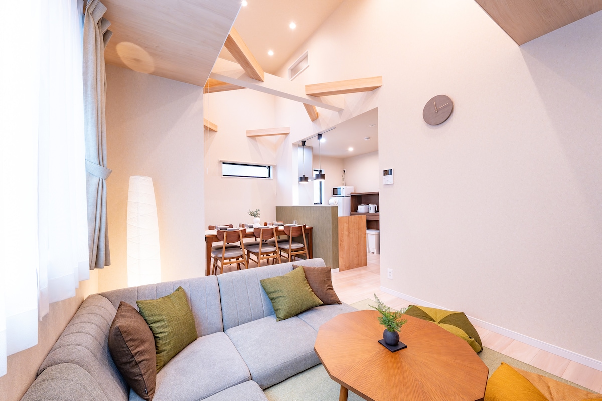 Just a 7-minute walk from Yahiro Station! This newly built, fully private house is perfect for families with kids. The loft includes a kids' space with Yogibo&toys. All furniture and appliances are brand new, and bedding is replaced after each cleaning for a clean and comfortable stay. If you have any questions, feel free to message us anytime. We look forward to your reservations! 【Maximum capacity】 12 people Ideal for families and groups of friends!